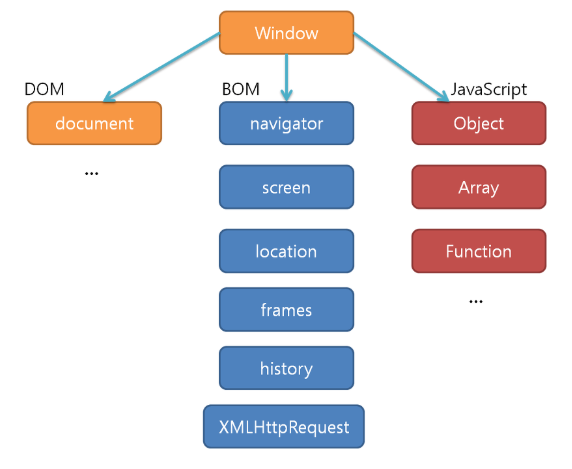 웹 브라우저에서 제공되는 객체 모델을 나타낸다. 웹 페이지를 조작하고 제어하기 위해 사용되며, 브라우저 창, 히스토리, 위치 등과 같은 브라우저 관련 객체를 포함한다.