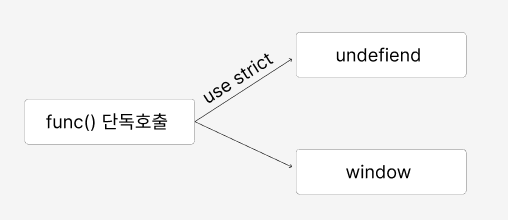 인딩이 되지만. use strict 를 통해 엄격모드를 사용하게 되면 undefiend가 된다.