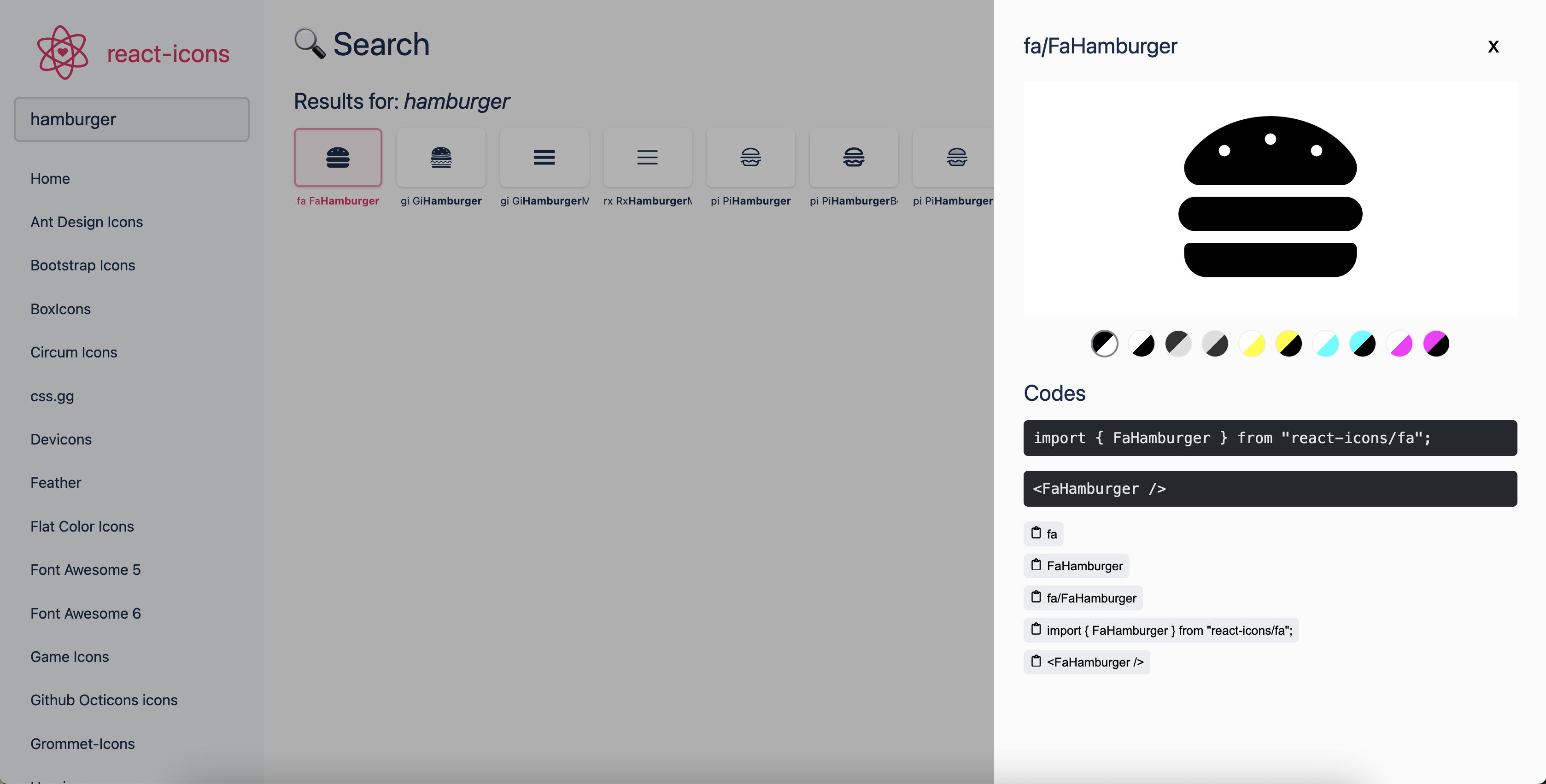 아이콘을 이용하는 사이트는 https://react-icons.github.io/react-icons/ 이다.