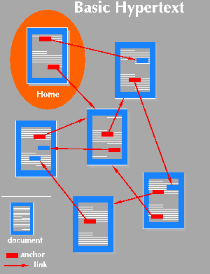 - 하이퍼 텍스트 : 단편적인 정보들을 하이퍼링크라는 고리를 이용하여 엮어 다른 문서로 이동하거나 정보를 보내는 등의 다각적으로 정보에 접근할 수 있는 체계를 의미한다.
